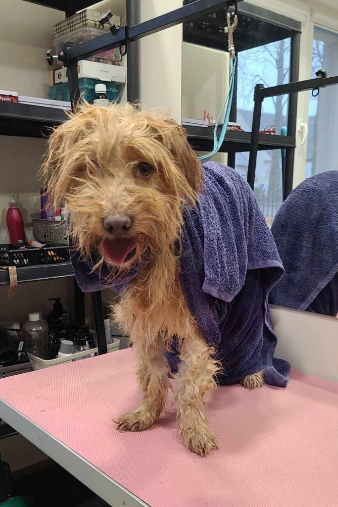 Er kam bereits im Oktober 2022 im Tierheim, als er mit einer Falle in der Nähe eines verlassenen Gehöfts im Bezirk Alytus eingefangen wurde. Damals war Amygo äußerst vorsichtig und hatte praktisch keinen Kontakt zu Menschen gehabt. Schritt für Schritt gewinnt er Vertrauen zu Menschen, ist aber nach wie vor sehr misstrauisch.