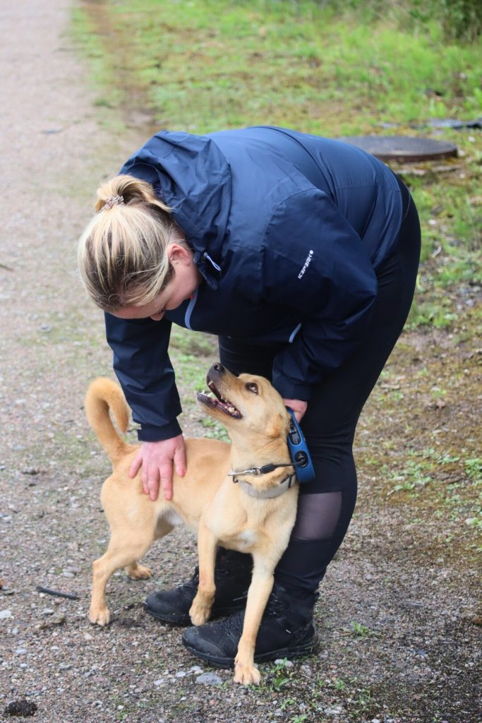 Er kommt mit anderen Hunden klar, aber nicht mit allen gleich gut – manchmal ist er wählerisch, wenn es ums Futter und den Schlafplatz geht. Er kennt Katzen und hat sich ihnen gegenüber nicht aggressiv verhalten. Er kann Treppen hoch- und runtersteigen.