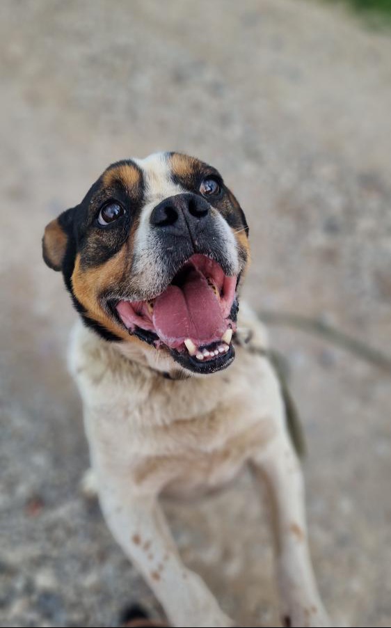 Balbo sieht auf den Fotos wie ein kleiner Hund aus, ist aber größer, wenn auch niedriger, wiegt aber mindestens 20kg, ist energiegeladen, neugierig und lieb.