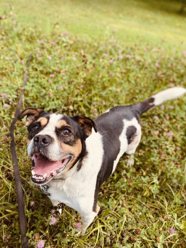 Er hatte Glück, denn eine Freiwillige aus dem Tierheim fand ihn, als er sich an einen Stein im Feld gekuschelt hatte (Bild 1 unten). Er bekam eine Chance.