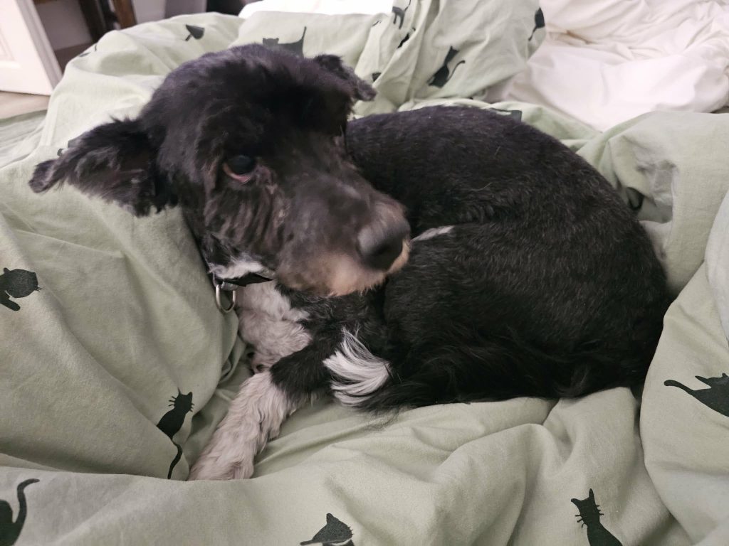 Der Senior Fedia verbrachte sein Leben auf einem Berg aus Exkrementen, bedeckt von einem undurchdringlichen Berg aus verfilztem Fell… Nun, als etwa 13-jähriger Senior, ist er endlich von beidem befreit. Typische Altersbeschwerden: ein leichtes Herzrasen, sowie durch ein hartes Leben und das Alter bedingte Gelenkverformungen.