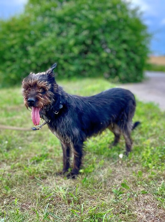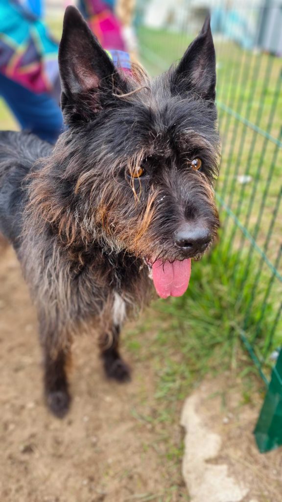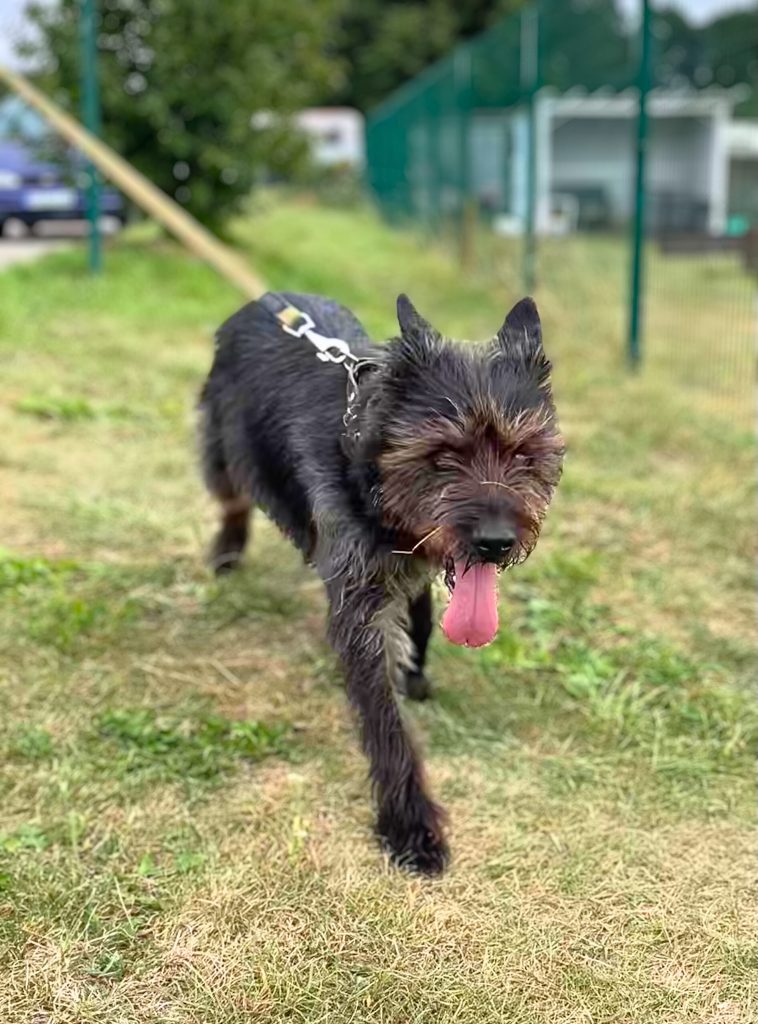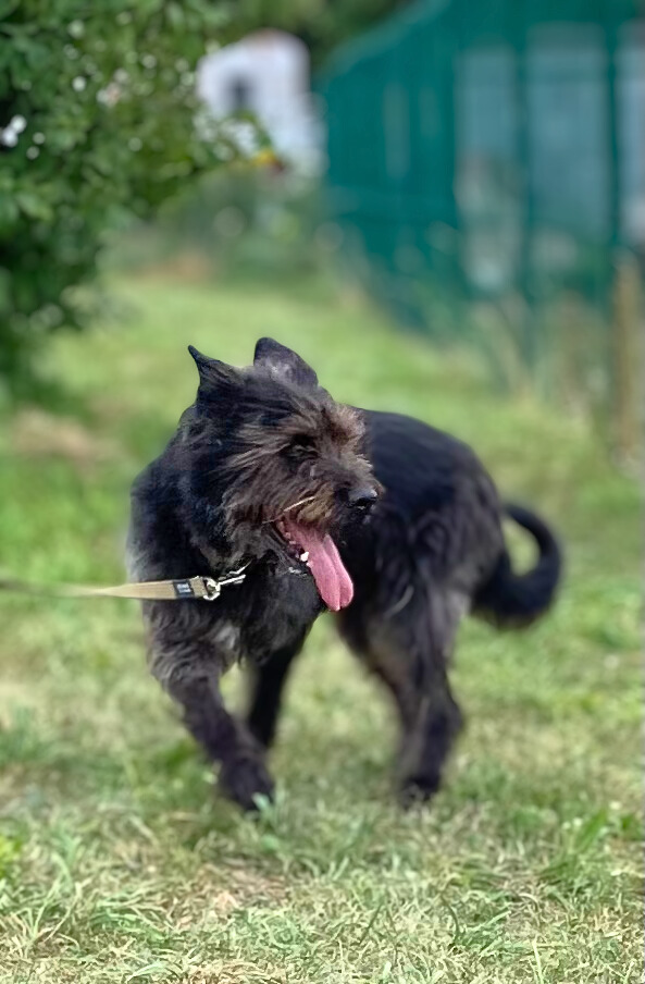 Freundlich mit Hunden, Katzen, Kindern. Sie ist es gewohnt, in einer Wohnung zu leben, wohnt aber seit 2022 wieder im Tierheim. Aufgrund ihres Alters und ihrer Größe sollte sie nicht oft viele Treppen steigen.