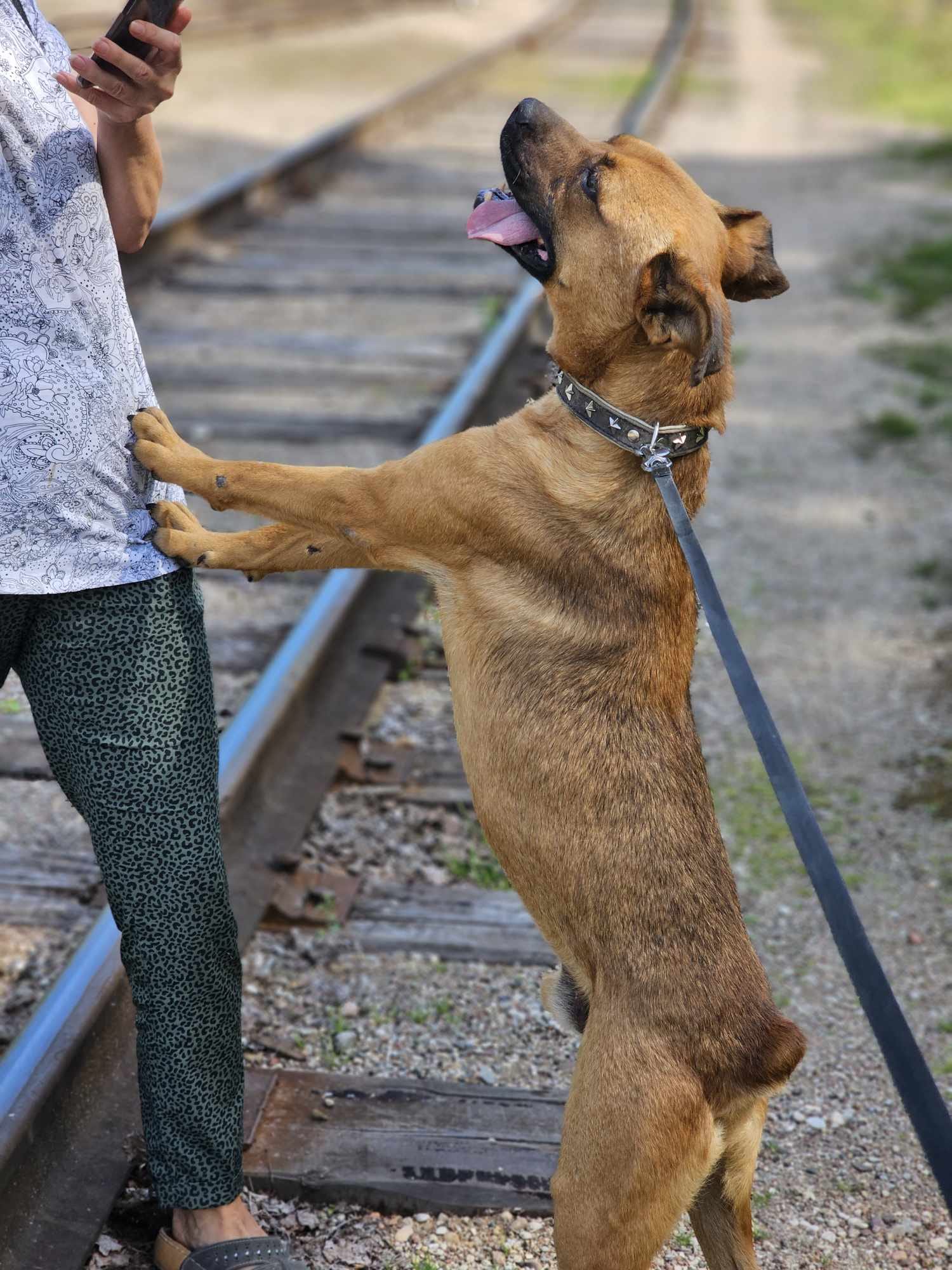Kommt mit einigen Hunden zurecht. Derzeit teilt er sich den Zwinger mit seinem Pflegebruder West. Leider das Zwingerleben hat ein paar Erziehungbaustellen hinterlassen. Er ist stark und zieht an der Leine, verschlingt das Futter. Was ist auch verstädlich ist, da ef davo zu wenig hatte. Die zukünftige Besitzer sollten Geduld haben und auch Hundeerfahrung um ihn sicher zu führen.