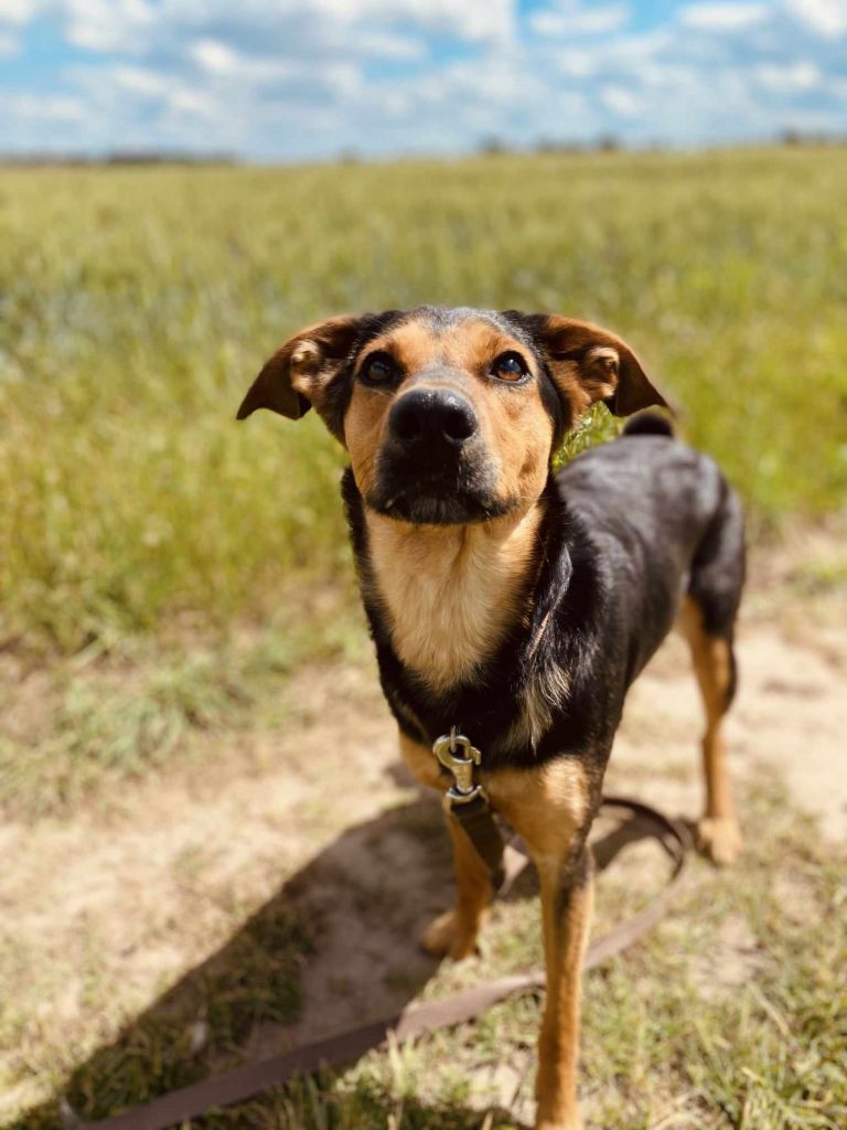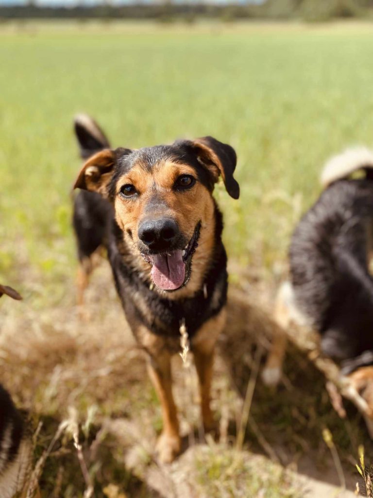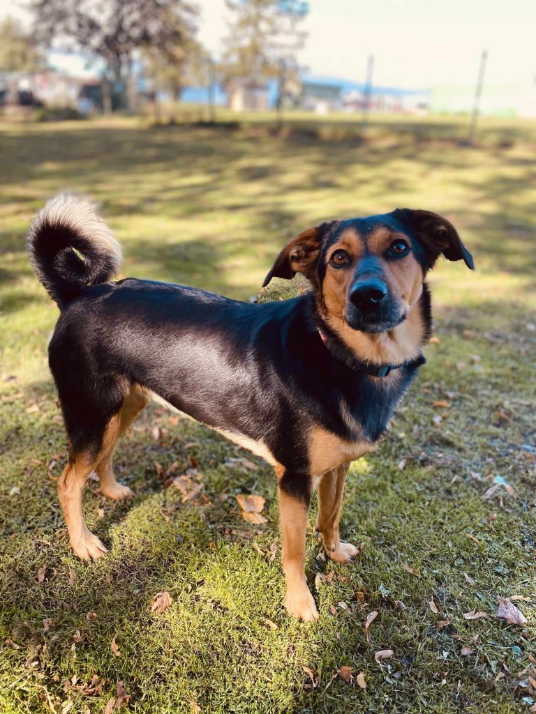 Sie ist noch jung und voller Energie, aber gut erzogen und läuft gut an der Leine. Sie liebt Menschen, versteht sich gut mit den meisten Hunden und kann bei Bedarf auch mit Katzen getestet werden.