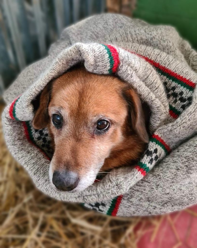 Süßer Senior Meškis (Bär) war ein treuer Freund der Menschen. Eines Tages erhielt das Tierheim einen Anruf, dass ein Mann gestorben war und nur noch ein Hund übrig war und niemand, der sich um ihn kümmern konnte.