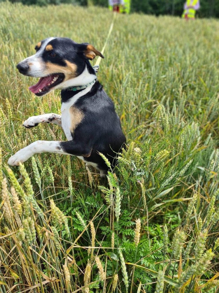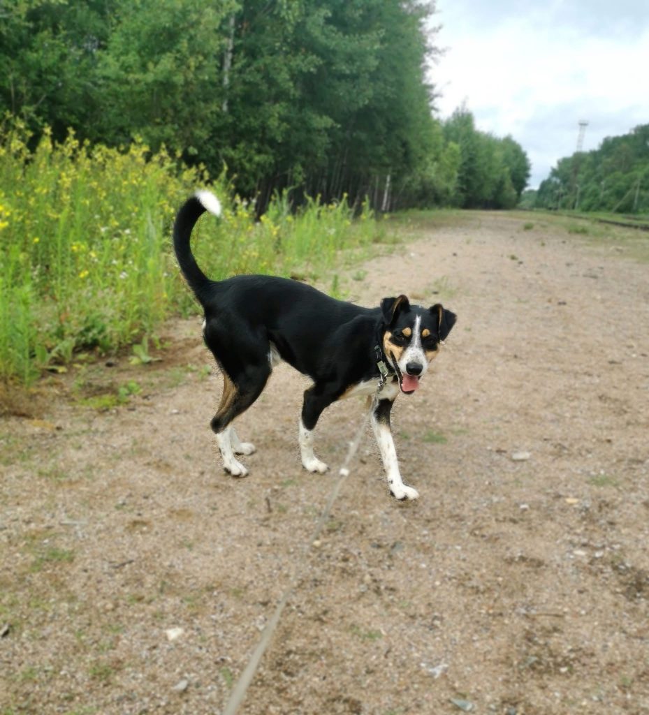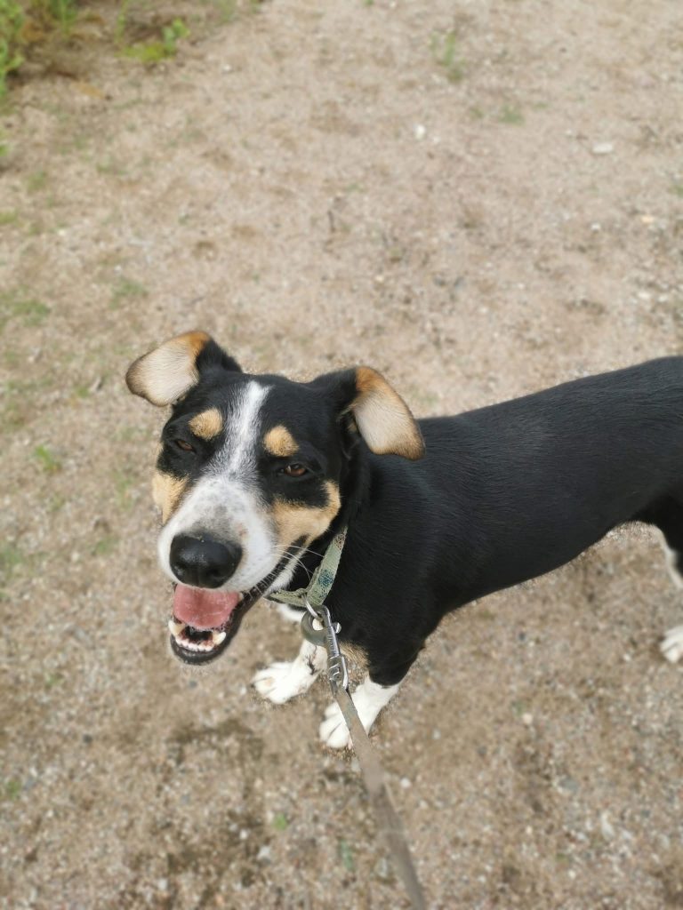 Er ist jung, mittelgroß, dreifarbig, hat kurzes Fell, eine schlanke Figur, einen wunderbaren Charakter, versteht die Regeln, ist ordentlich, versteht sich gut mit anderen Hunden (mit Hündinnen sehr gut, mit Rüden je nach Sympathie) und ist ein perfekter Freund für Kinder. Das Einzige ist, dass Migelis anscheinend kein großer Fan von Katzen ist.