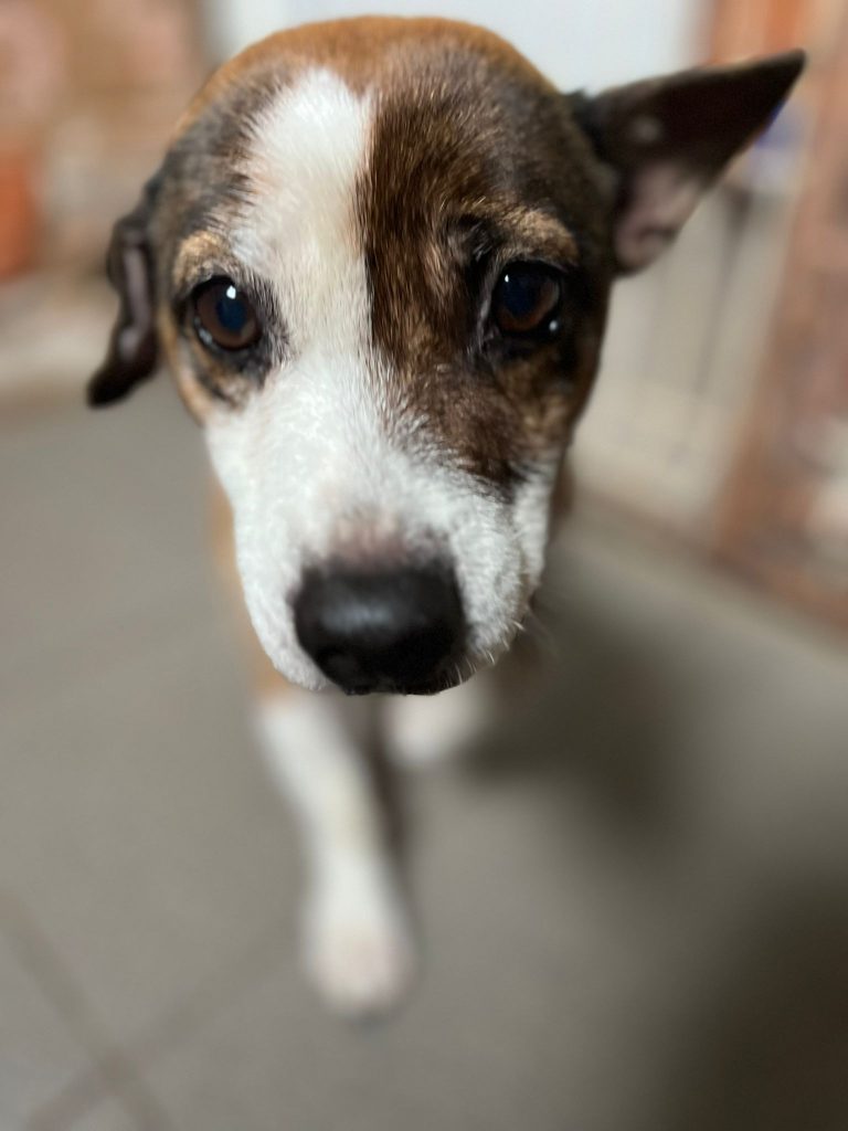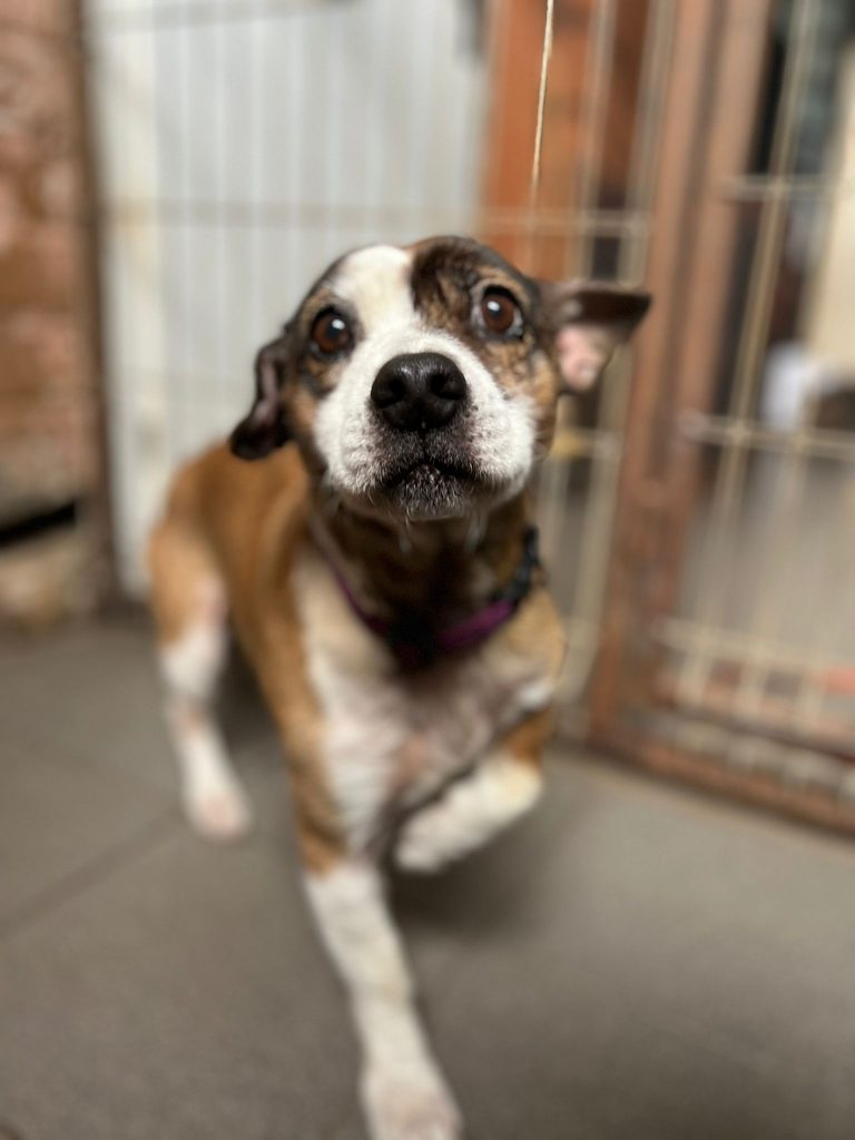 Mumis – ein Senior mit einem Welpengesicht und einer Kuhkette um den Hals💔