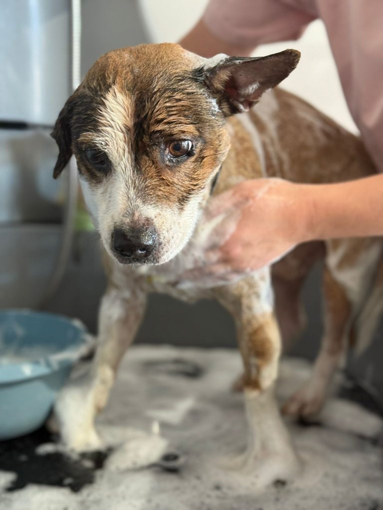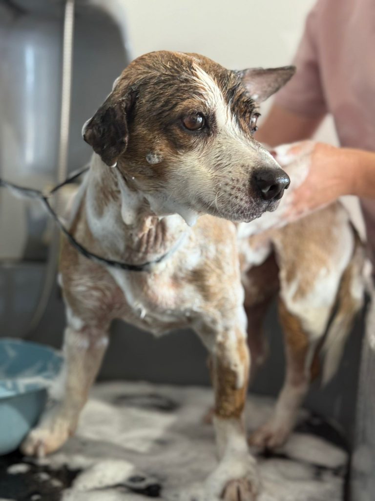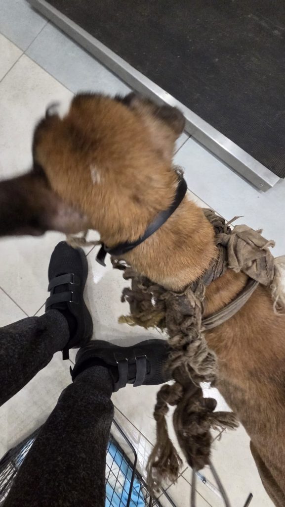 Er ist ruhiger als Wasser, langsam, still, unendlich liebenswert, gut, kann Sachen heben und tragen und ist zu jedem freundlich🥰 Das Tierheim hat ihn aufgenommen, als er sich von seiner Kette befreit hatte und mit einer schlimmen Wunde am Hals gefunden wurde. Er kriegt Medikamente gegen Gelenkentzündungen und Schmerzen sowie Ergänzungsmittel für sein Herz.