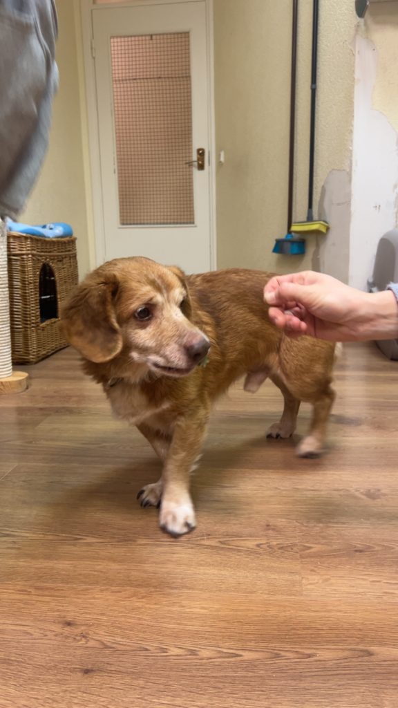 Natas wurde zusammen mit sechs weiteren Hunden unter unvorstellbaren Bedingungen bei einer 94-jährigen Frau gefunden, die sich nicht einmal mehr selbst versorgen konnte. Das Video ihrer Rettung ist oben verlinkt. Zwei der Hunde haben bereits ein neues Zuhause gefunden, einer hat leider nicht überlebt und vier sind noch im Tierheim. Dieser kleine Schatz ist ruhig, freundlich, gut erzogen, versteht sich gut mit anderen Hunden und läuft gut an der Leine. Er hat einen entzückenden kleinen Schwanz.