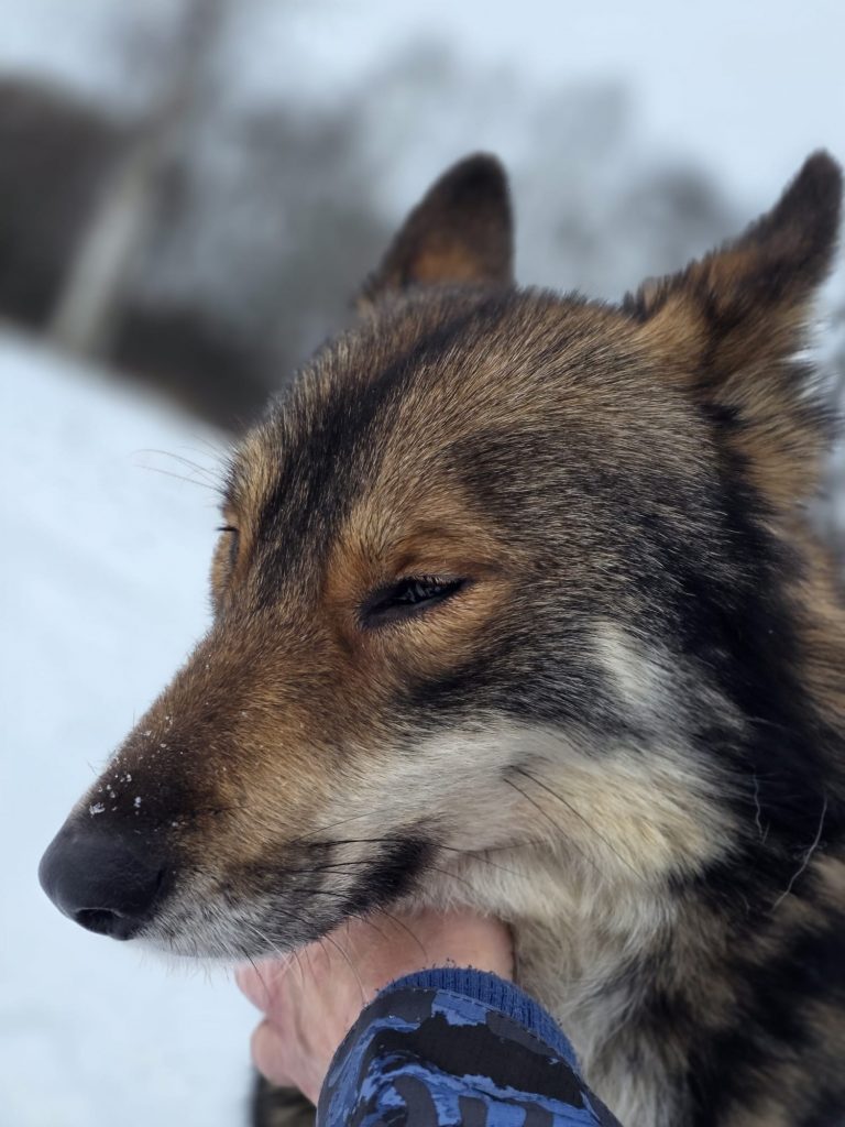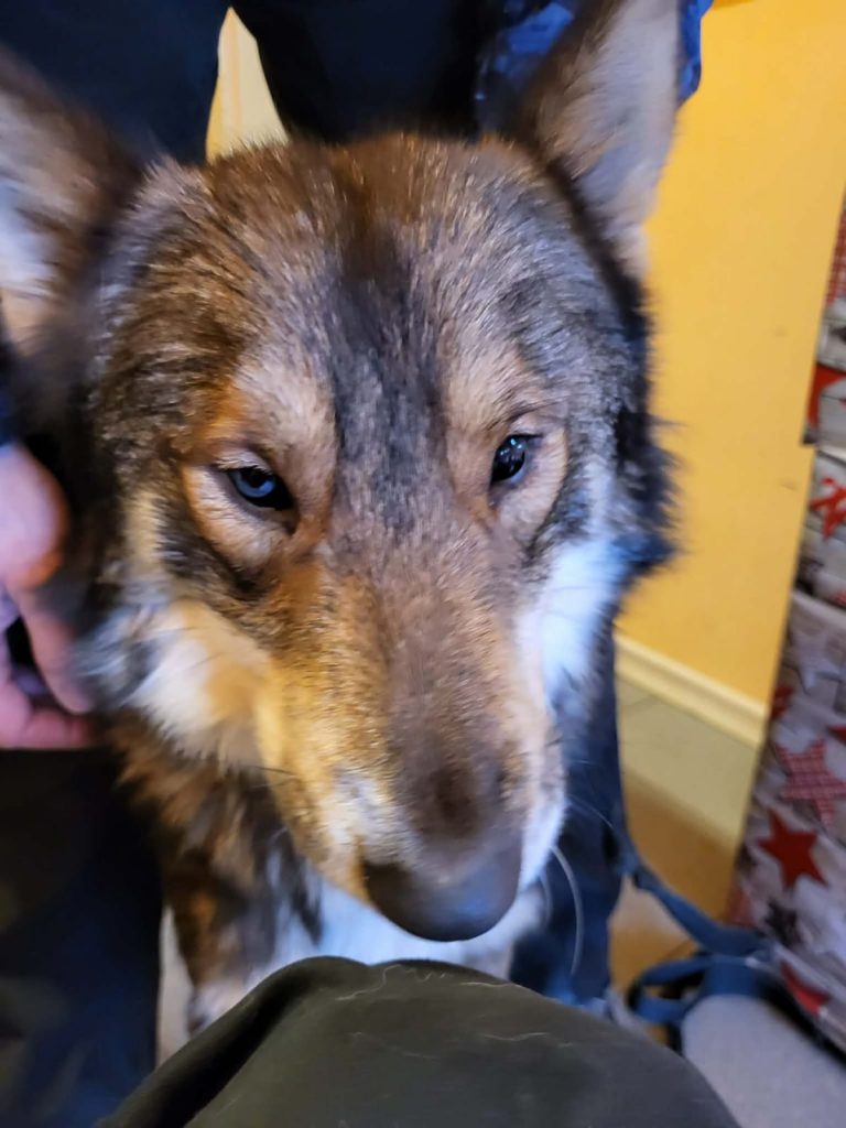 Nach der Untersuchung beim Augenarzt – beide Augen waren einst durch eine Verletzung oder eine Krankheit verletzt worden; die Ursache werden wir nie erfahren, doch es ist nun einmal so, dass die Flüssigkeit aus ihnen ausgelaufen ist, die Augäpfel sind geschrumpft, und der einzige Unterschied zwischen ihnen besteht darin, dass die Wunden am rechten Auge verheilt sind und sich nicht verändern, während die Wunde am linken Auge nicht verheilt ist, die Iris sich in das Auge gedrückt hat und das Auge durch den austretenden Flüssigkeitsausfluss reizt, weshalb der Hund es reibt, weil es schmerzt🙏