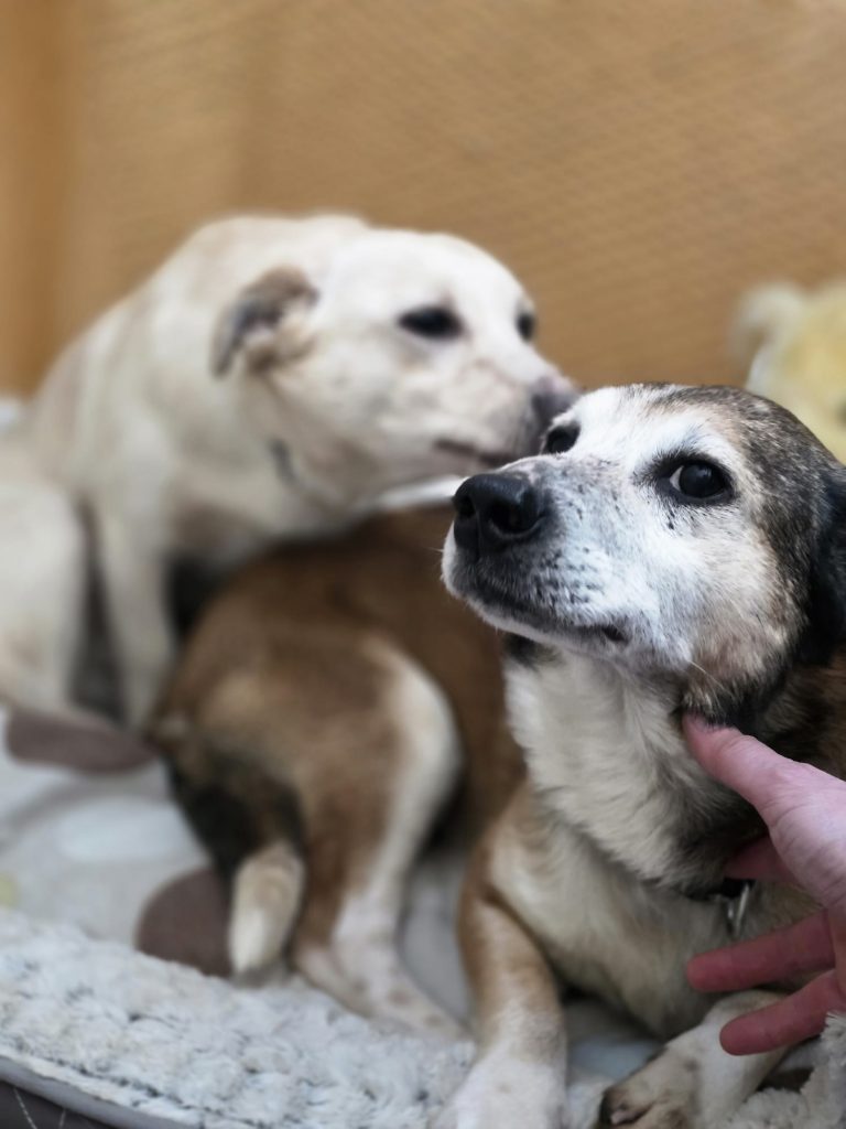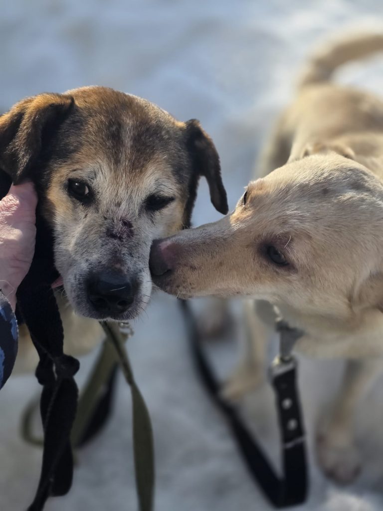 Derzeit lebt er mit Saule zusammen, und die beiden verstehen sich hervorragend. Wir möchten sie nicht unbedingt gemeinsam vermitteln, da ein großer Altersunterschied besteht und sie weder verwandt sind noch eine lebenslange Bindung zueinander haben. Da sie sich jedoch hervorragend verstehen, haben wir das perfekte Paar für Sie, falls Sie zwei Hunde suchen – einen Einjährigen und einen Zehnjährigen.